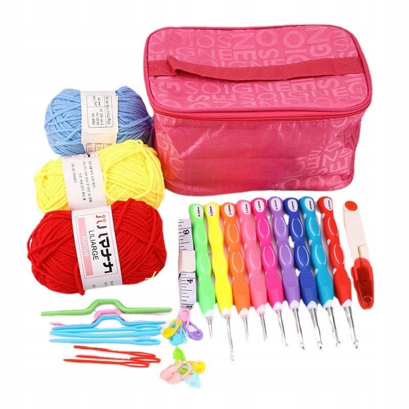 Kompletny zestaw do szydełkowania włóczka szydełka akcesoria 33 elementy
