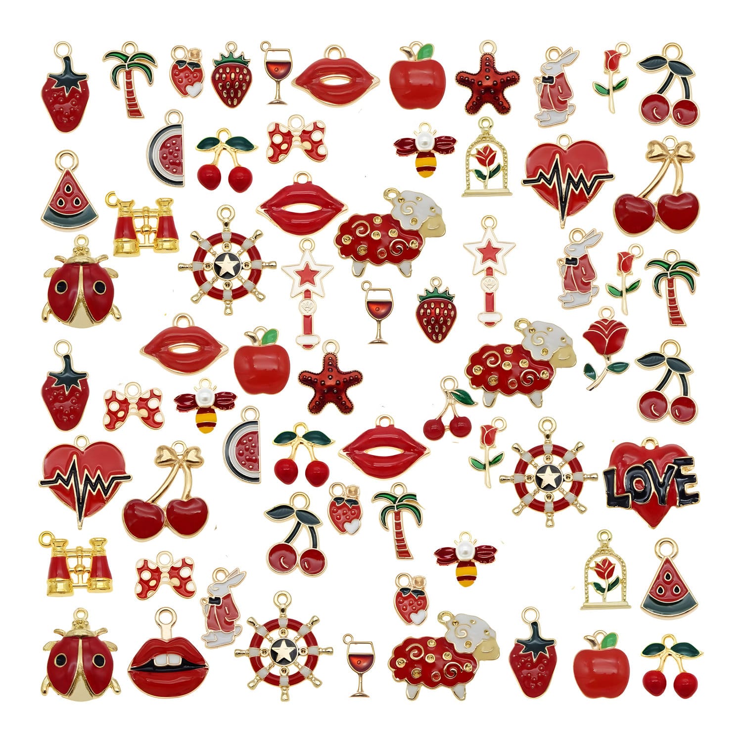 Zestaw czerwonych metalowych zawieszek do biżuterii 30 szt.