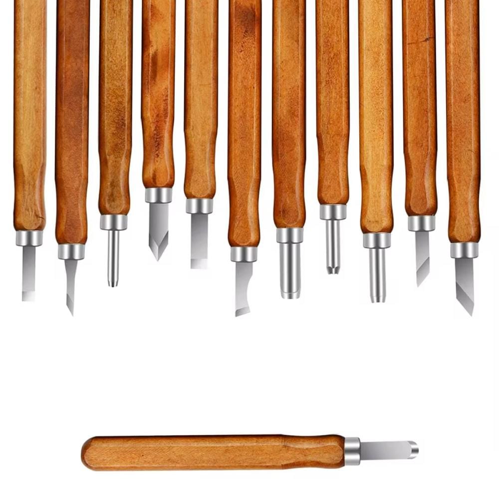 Zestaw do rzeźbienia w drewnie: 12 różnych dłut o ostrzach ze stali węglowej SK2, idealne do rzeźbienia w drewnie, kamieniu mydlanym, rękodzieła, rzeźb w warzywach czy glinie.