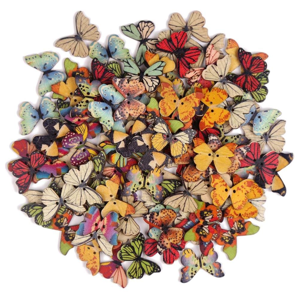 Zestaw 100 guzików: Otrzymujesz aż 100 sztuk kolorowych, drewnianych guzików w kształcie motylków. To wystarczająco dużo, by ozdobić wiele projektów rękodzielniczych czy ubrań.