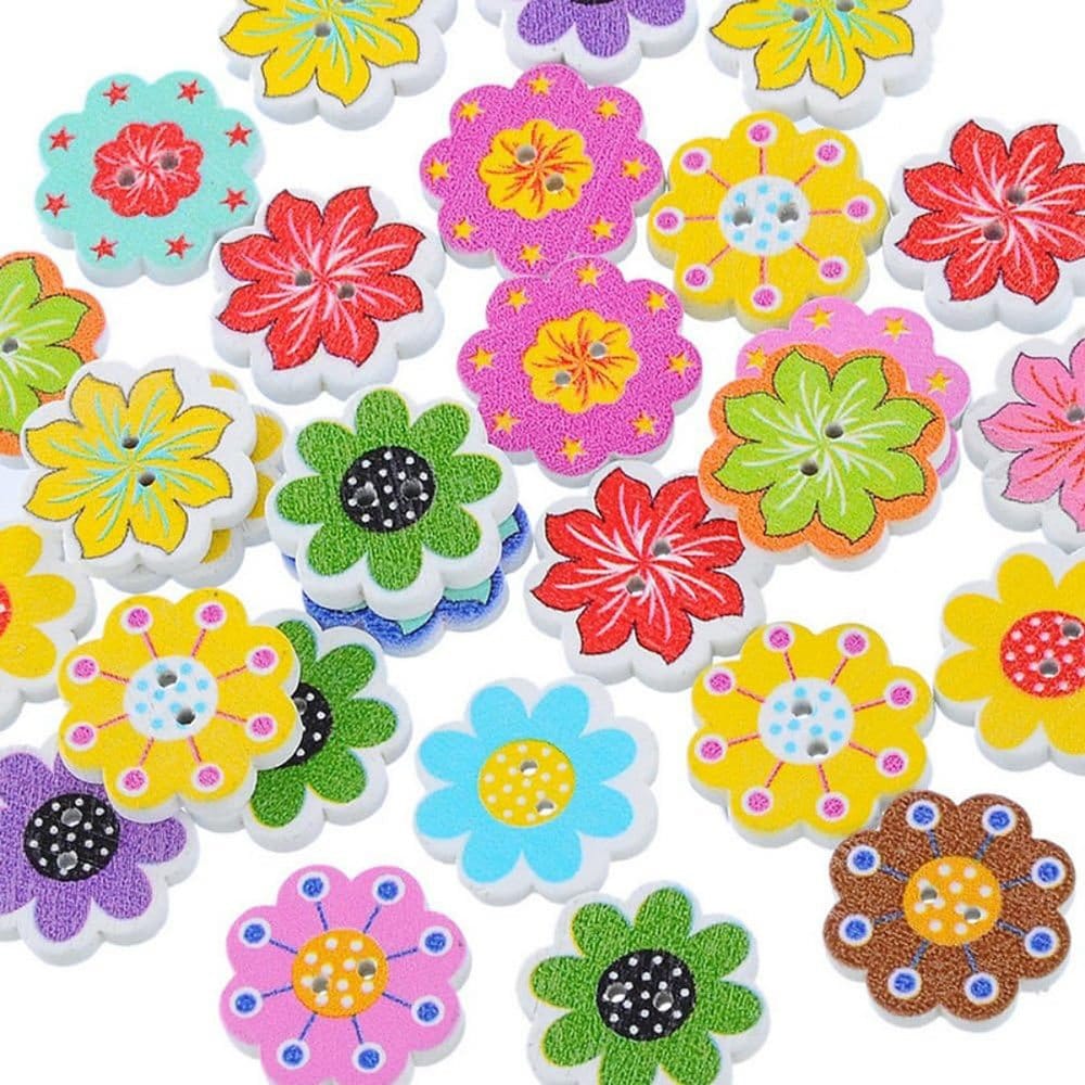 Guziki drewniane kolorowe kwiaty 50 szt.