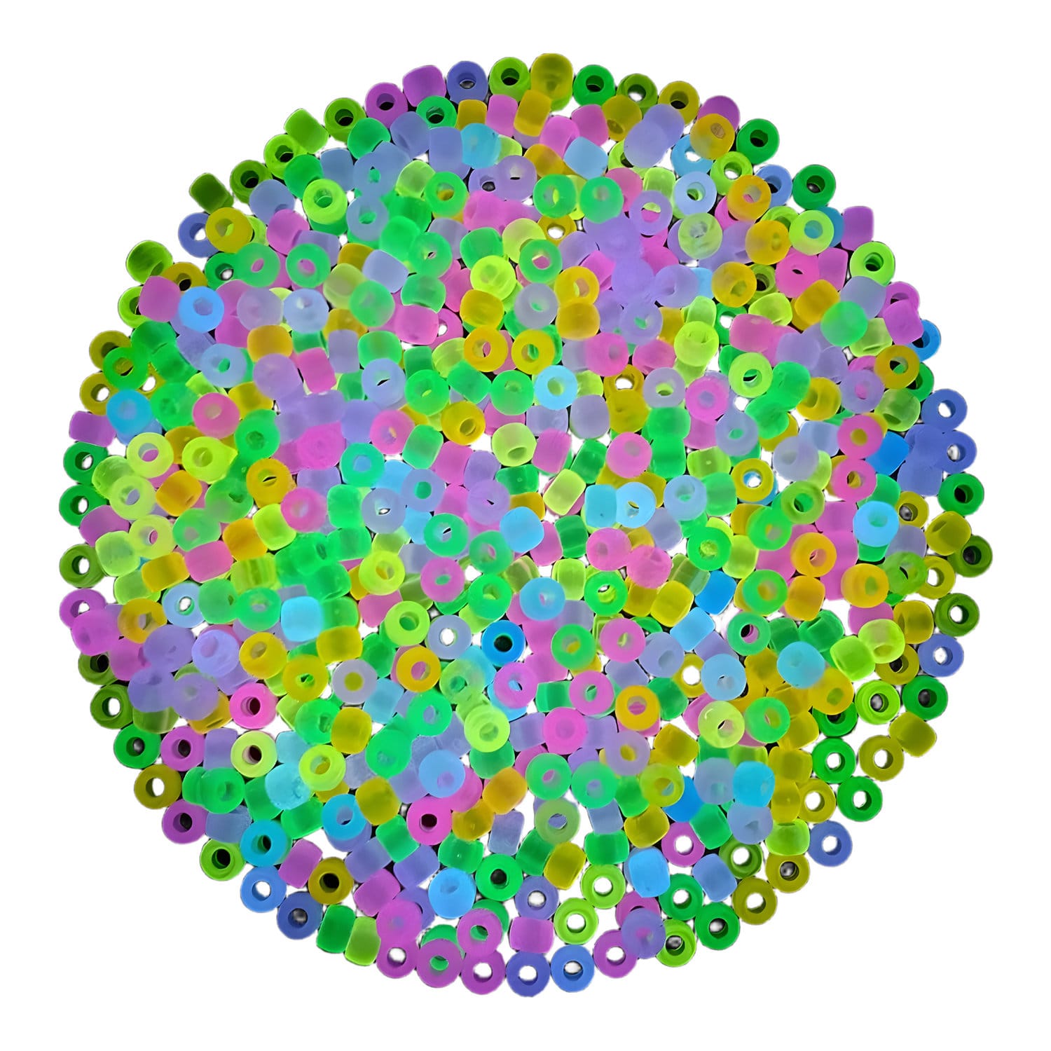 Zestaw 200 akrylowych koralików typu pony, które po naświetleniu emitują delikatne światło w ciemności. Koraliki mają gładką powierzchnię i są lekkie, dzięki czemu doskonale nadają się do tworzenia kolorowych bransoletek, naszyjników czy ozdób do włosów. Po wystawieniu na działanie światła słonecznego lub lampy, koraliki zaczynają świecić, dodając wyjątkowego efektu Twoim projektom DIY.