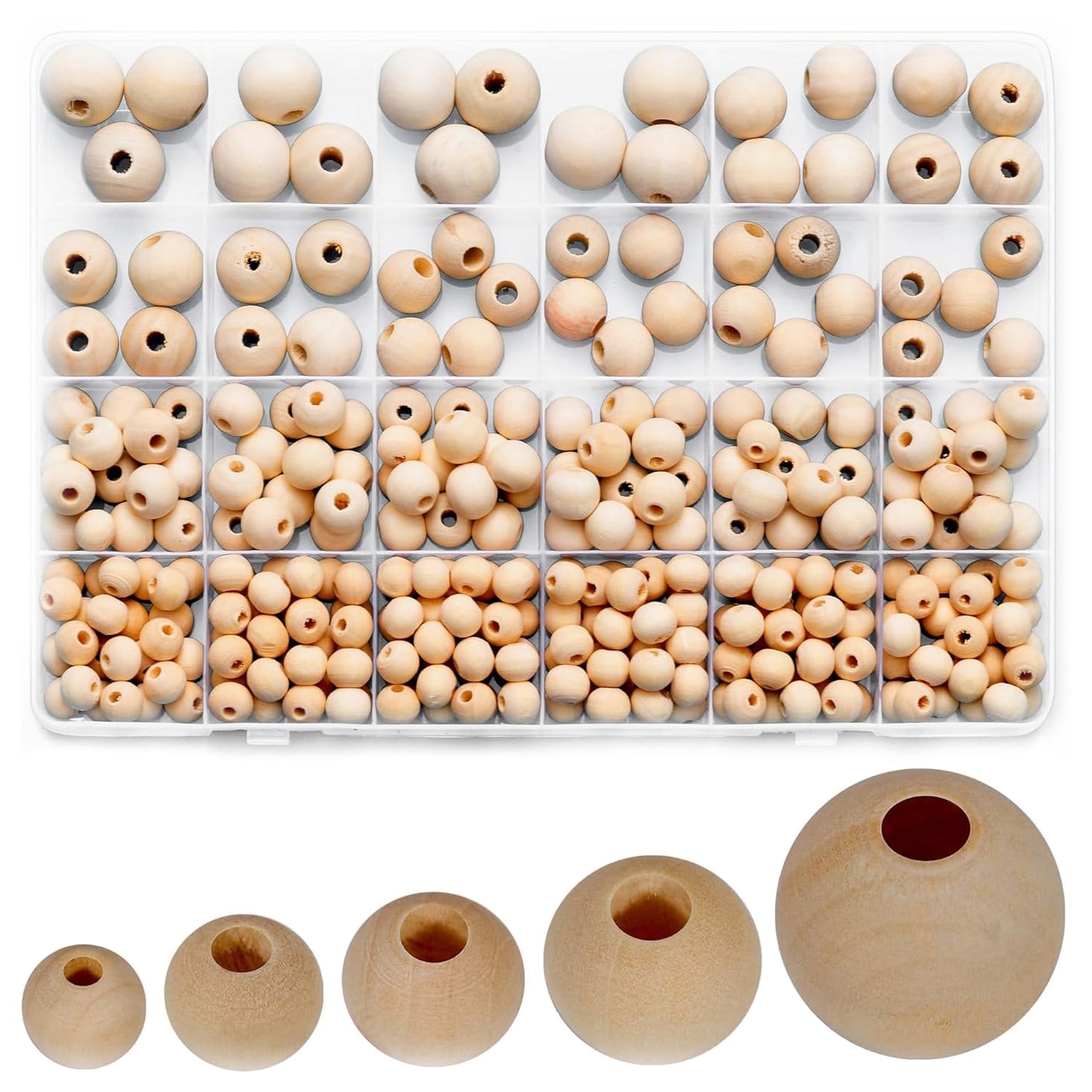 Zestaw 280 sztuk: komplet zawiera pięć różnych rozmiarów koralików drewnianych, co daje szerokie możliwości w projektach DIY i dekoracyjnych. Dzięki dużej ilości łatwo przygotujesz większe ozdoby czy zestawy biżuterii.