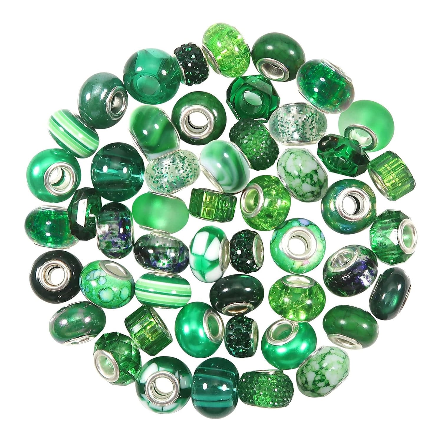 Zestaw 50 koralików z dużym otworem: Kompletny zestaw ozdobnych koralików do biżuterii i rękodzieła. Różne wzory pozwalają tworzyć oryginalne i efektowne projekty.