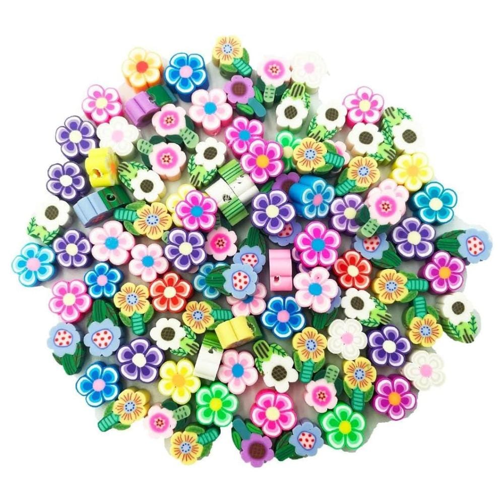 Zestaw 100 kolorowych koralików w kształcie kwiatów z lekkiej i trwałej glinki, to idealny wybór do tworzenia oryginalnej biżuterii oraz dekoracji. Sprawdzą się świetnie przy tworzeniu bransoletek, naszyjników, spinek czy ozdób do włosów.