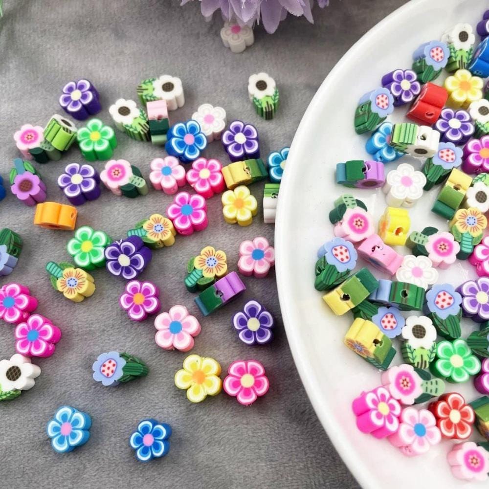 - Ręcznie wykonane kwiatowe koraliki: Każdy koralik to starannie wykonany, unikalny element z kolorowej glinki. Nadają się idealnie do tworzenia indywidualnej biżuterii i ozdób DIY.