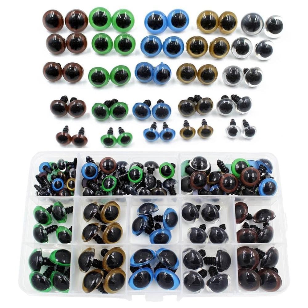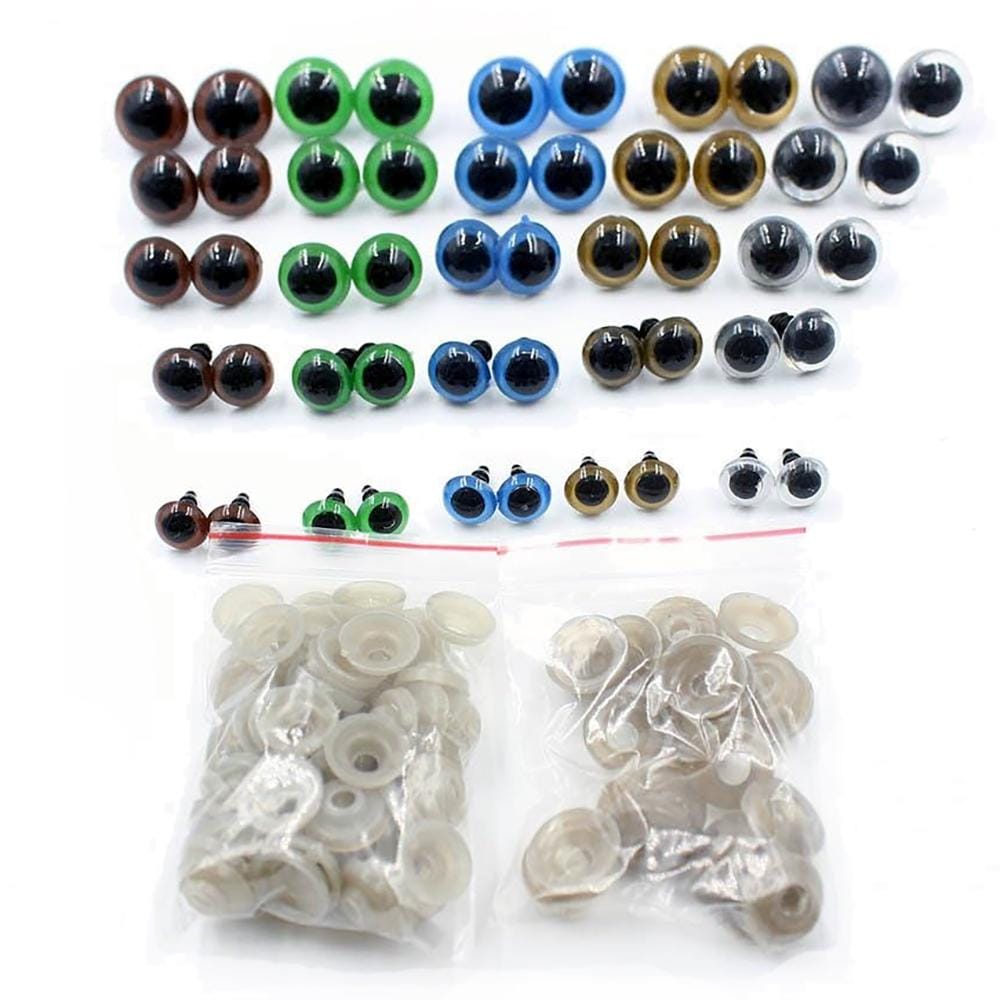 Kompletny zestaw do tworzenia zabawek: Zawiera 100 oczek w 5 rozmiarach i 5 kolorach, idealnych do różnorodnych projektów z pluszu, włóczki i filcu. Dodatkowo 100 podkładek zapewnia trwałe mocowanie.