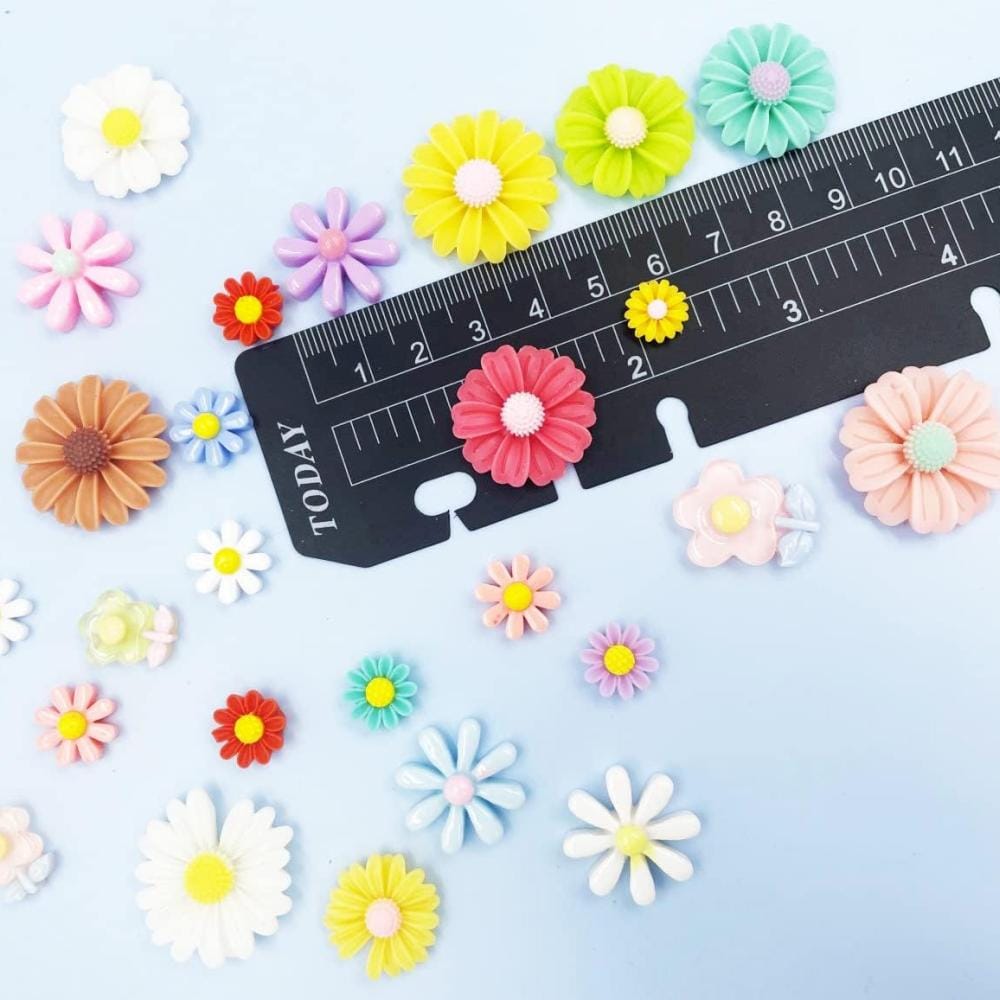 - Zawartość zestawu: 100 sztuk płaskich kwiatków z żywicy
