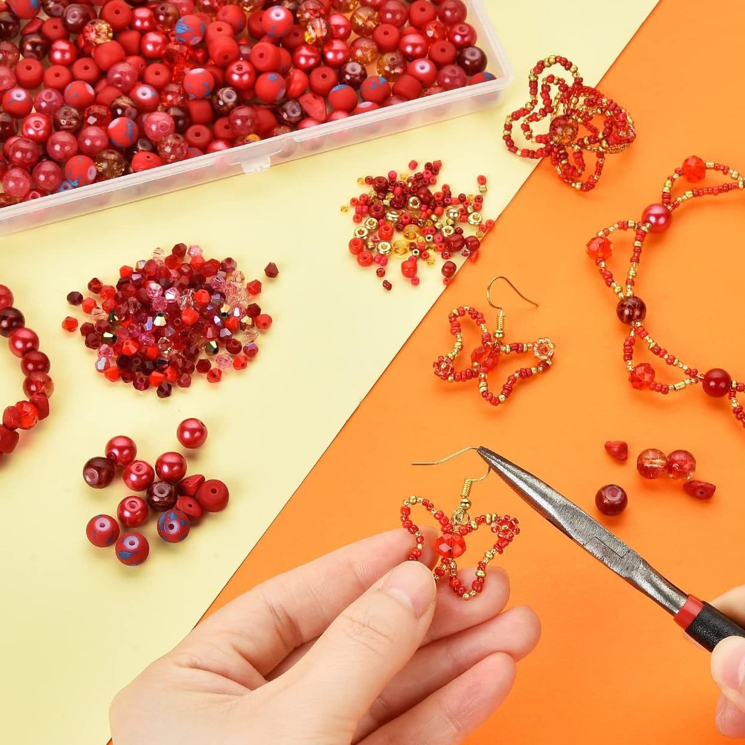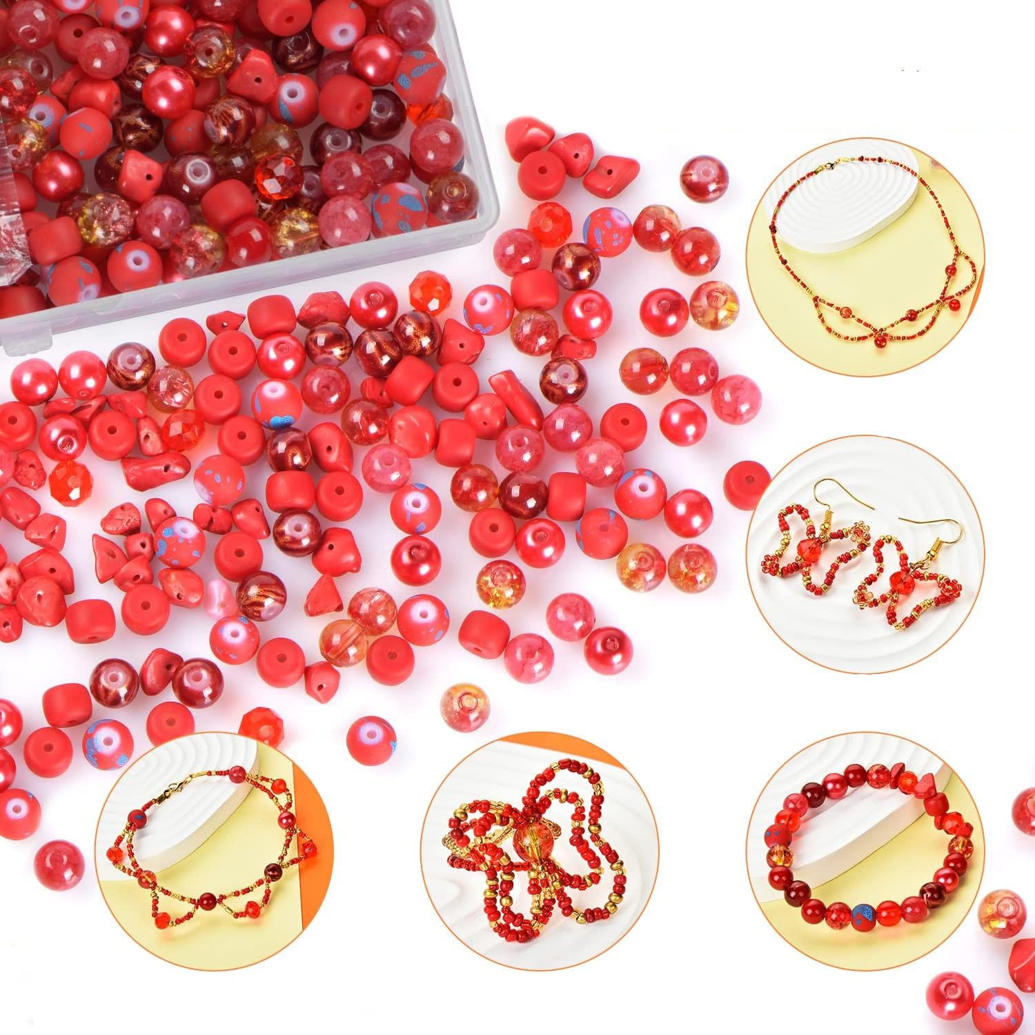 Zestaw czerwonych koralików do bransoletek i biżuterii 900 szt.