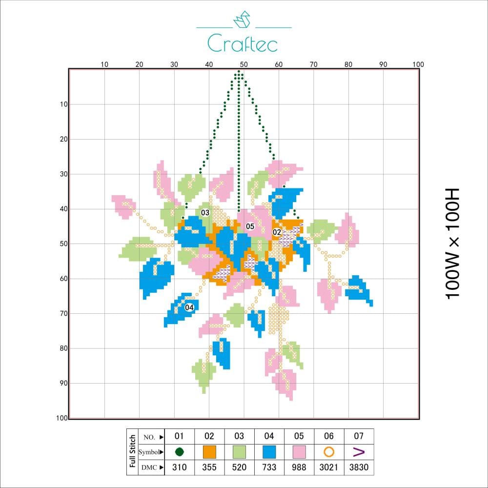 - Kolorowy schemat wzoru – łatwy do odczytania, zgodny z oznaczeniami na tkaninie