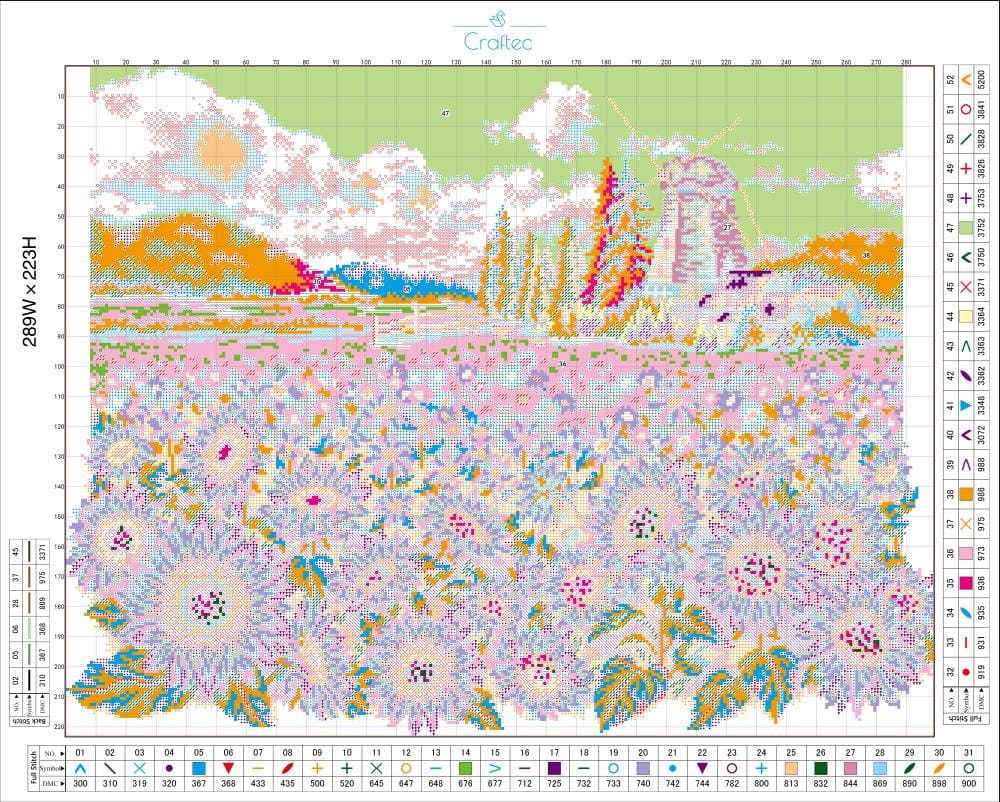 Czytelny nadruk – wzór jest kolorowy i podzielony siatką, a każdy ścieg oznaczony symbolem. Dzięki temu łatwo odczytasz, jaki kolor i rodzaj ściegu należy zastosować.