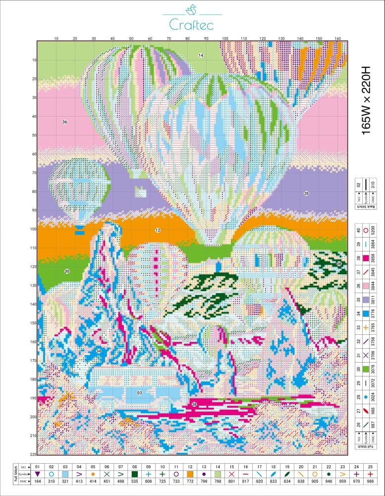 Czytelny nadruk – wzór jest kolorowy i podzielony siatką, a każdy ścieg oznaczony symbolem. Dzięki temu łatwo odczytasz, jaki kolor i rodzaj ściegu należy zastosować.