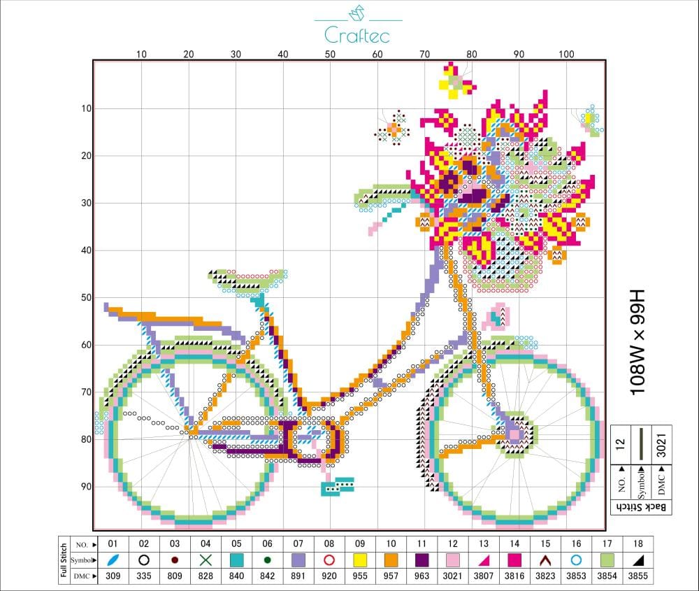 Czytelny nadruk – wzór jest kolorowy i podzielony siatką, a każdy ścieg oznaczony symbolem. Dzięki temu łatwo odczytasz, jaki kolor i rodzaj ściegu należy zastosować.