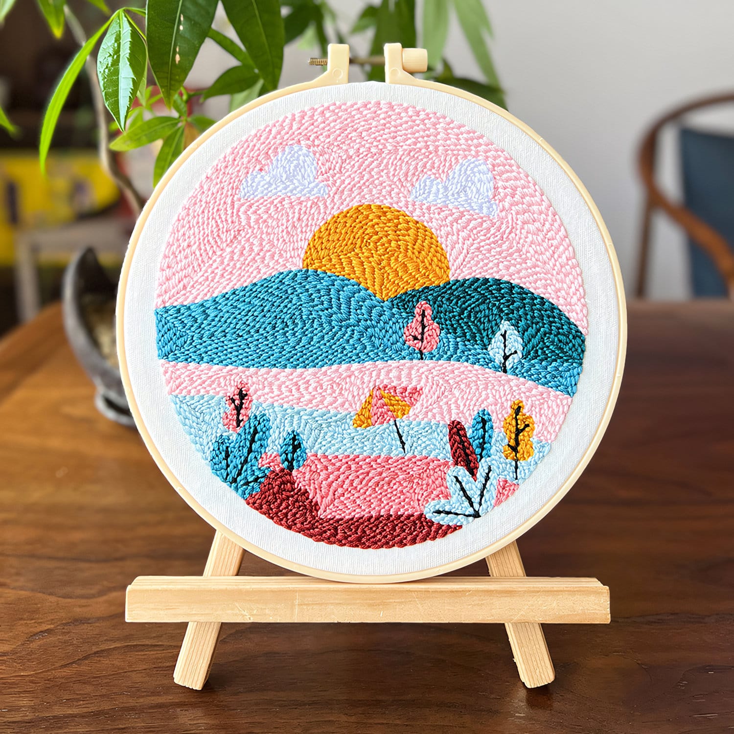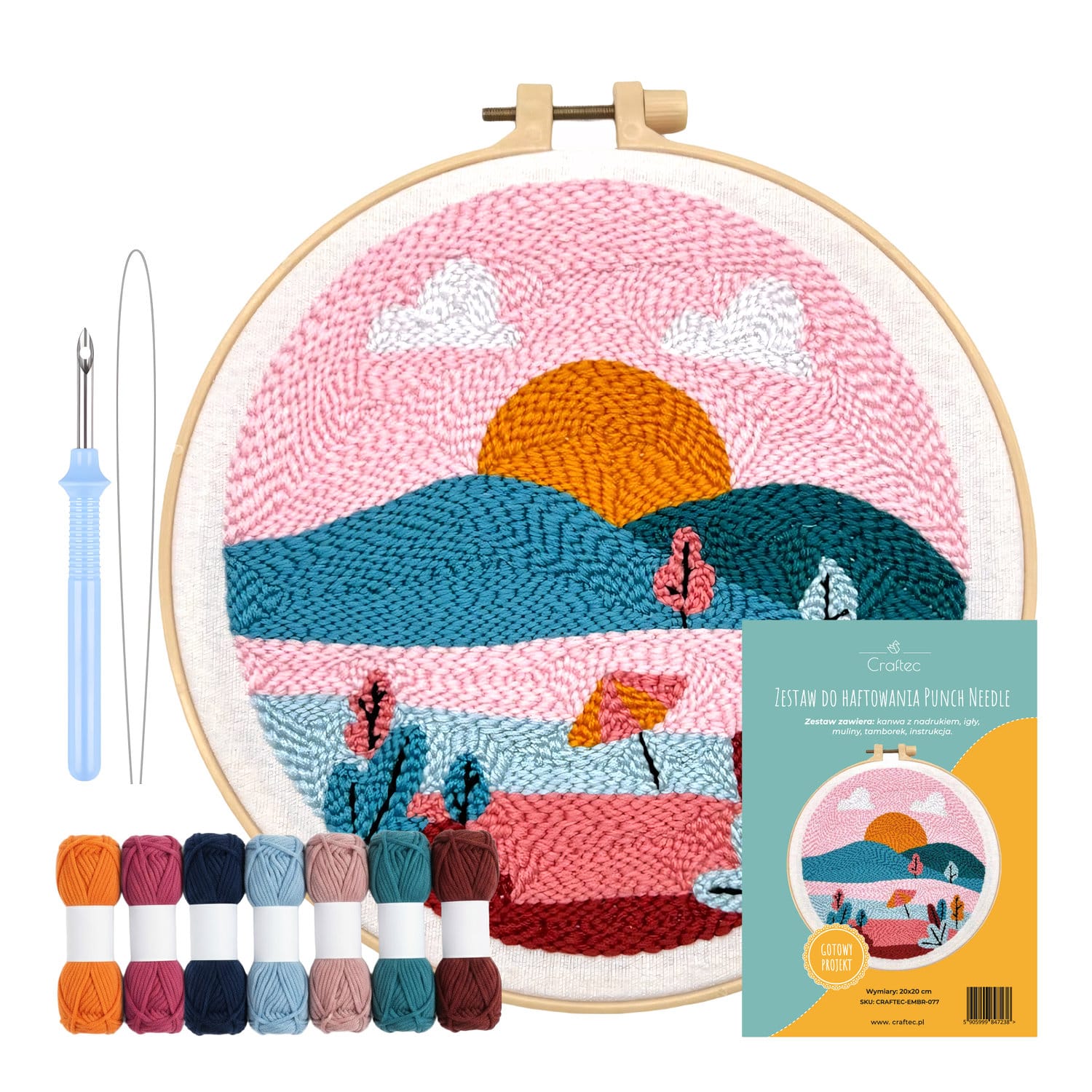 Zestaw do haftu typu punch needle to kompletny pakiet startowy dla osób rozpoczynających przygodę z haftem pętelkowym. Zawiera wszystkie niezbędne akcesoria, w tym tkaninę z nadrukowanym wzorem, tamborek, igłę punch needle oraz kolorowe włóczki. Prosta technika i czytelna instrukcja sprawiają, że tworzenie dekoracyjnego haftu jest łatwe i przyjemne, nawet bez wcześniejszego doświadczenia.