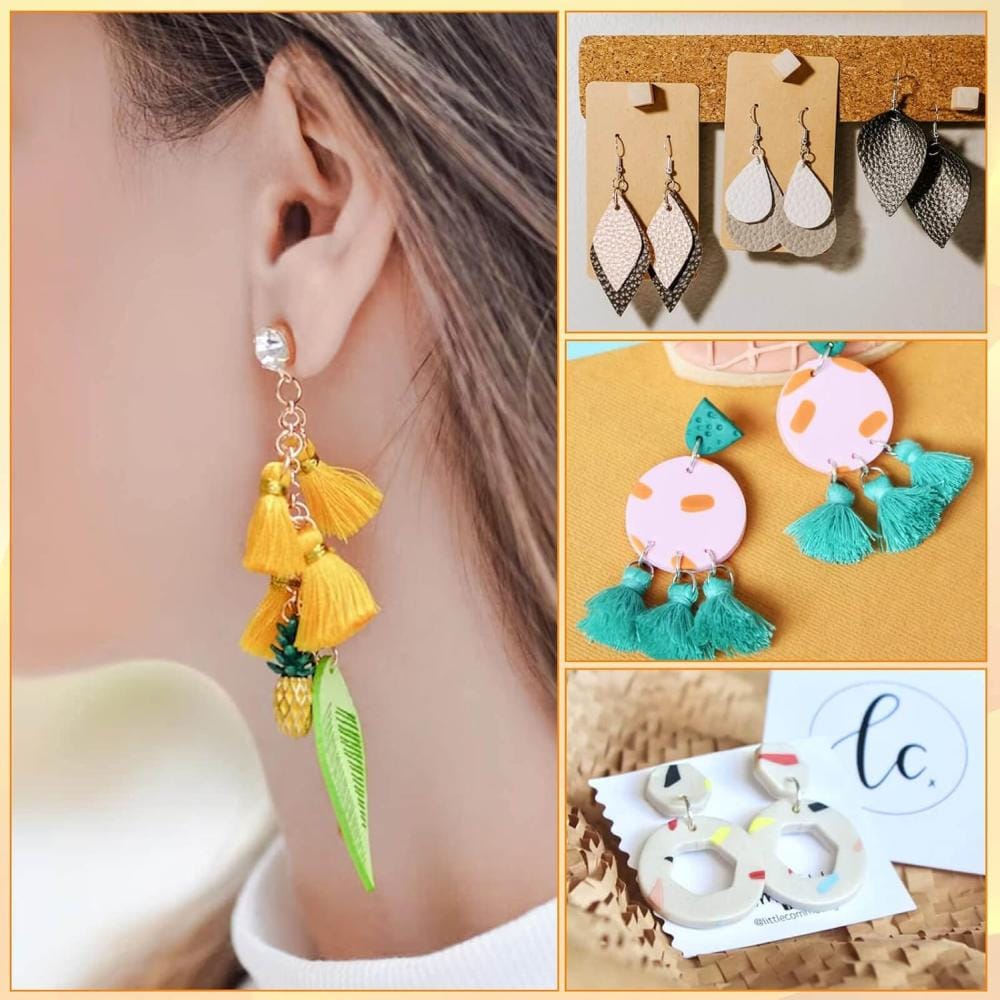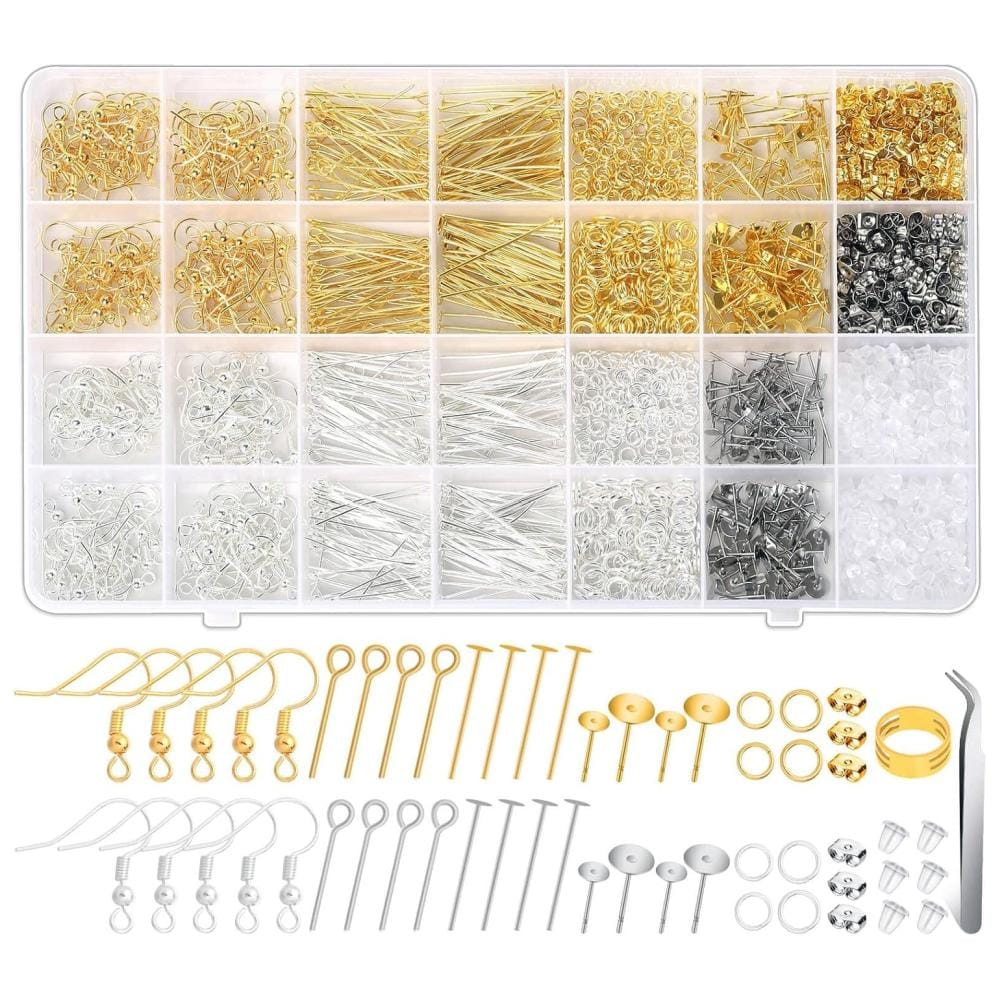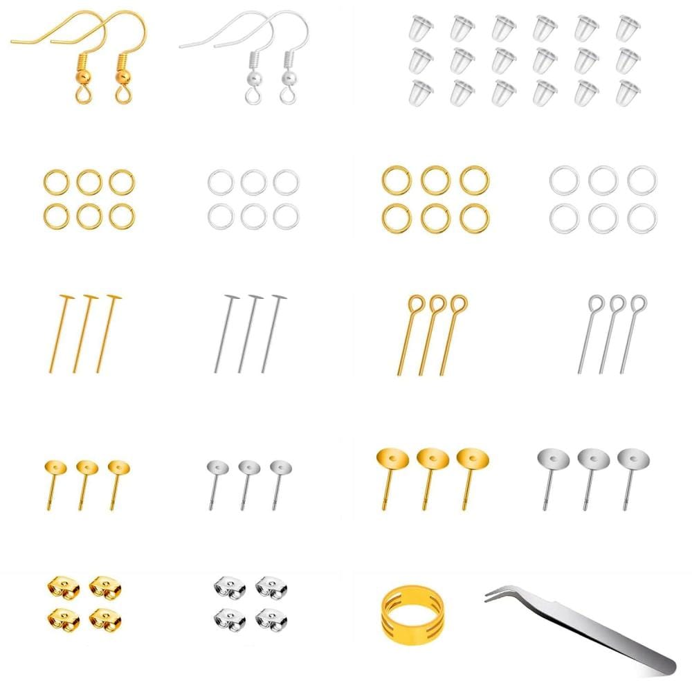 - Kompletny zestaw akcesoriów: bigle, szpilki, kółeczka montażowe, silikonowe zatyczki i inne elementy, idealne do tworzenia i naprawy kolczyków.
