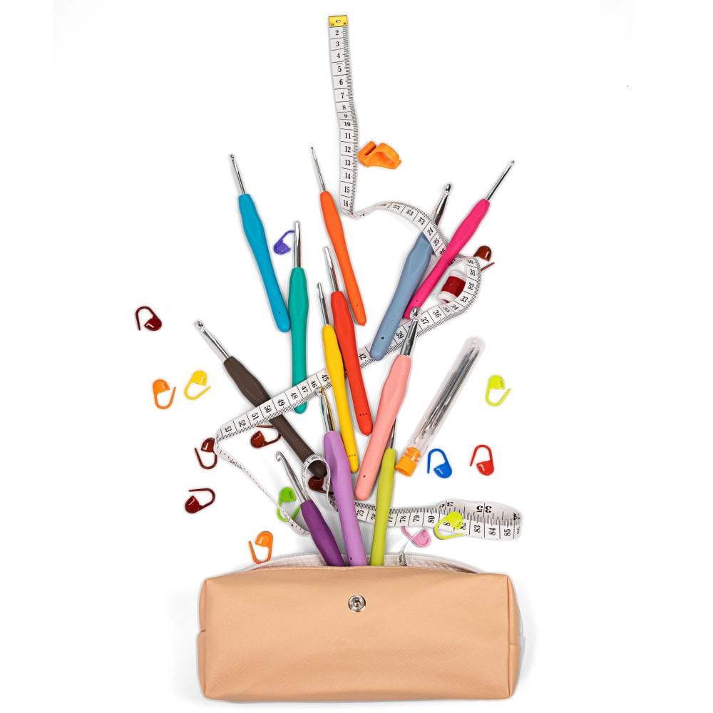 Zestaw szydełek dedykowany dla pasjonatów robótek ręcznych. Oferuje 12 szydełek z wyprofilowaną rączką o rozmiarach od 2 do 8 mm. Gumowe uchwyty zapewniają wygodę podczas użytkowania. Każde szydełko posiada napisany rozmiar. Zestaw zawiera także 28 dodatkowych akcesoriów ułatwiających pracę.