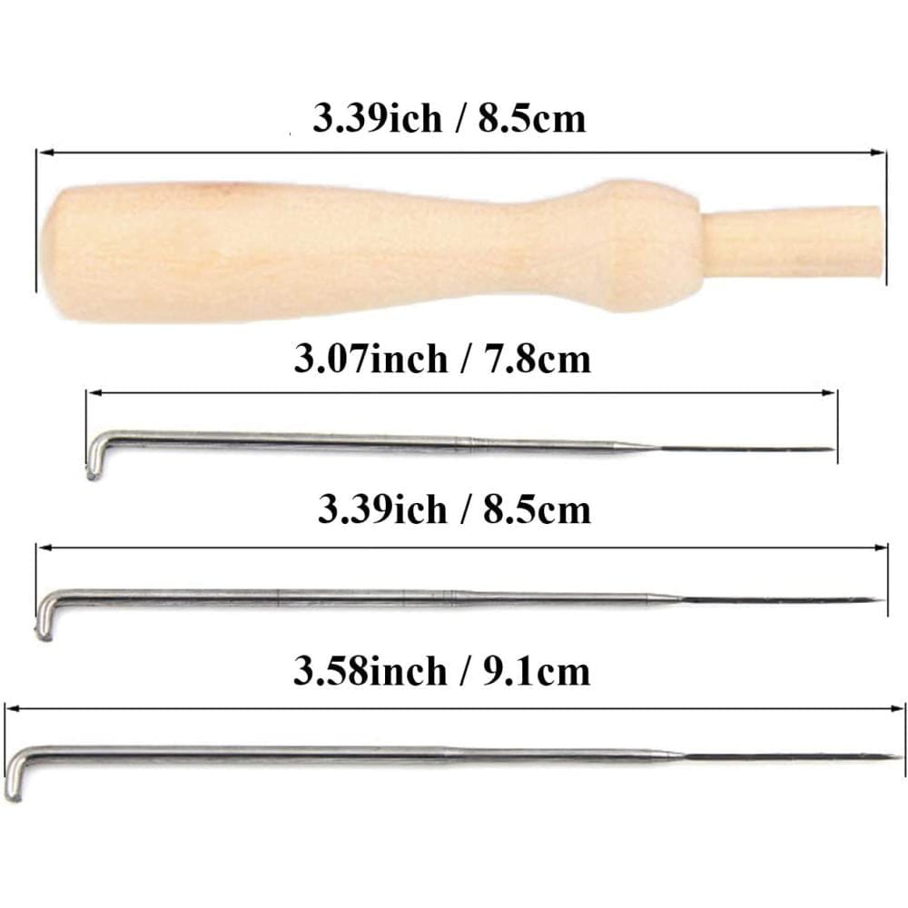 Podstawowy zestaw igieł do filcowania w 3 różnych rozmiarach. Zawiera drewniany trzonek oraz 30 (10 każdego rozmiaru) zapasowych igieł. Umożliwia to wygodną pracę na różnych etapach filcowania. Igły wykonane są ze stali nierdzewnej, co gwarantuje ich trwałość. Do ich przechowywania dołączona została zakręcana tuba.
