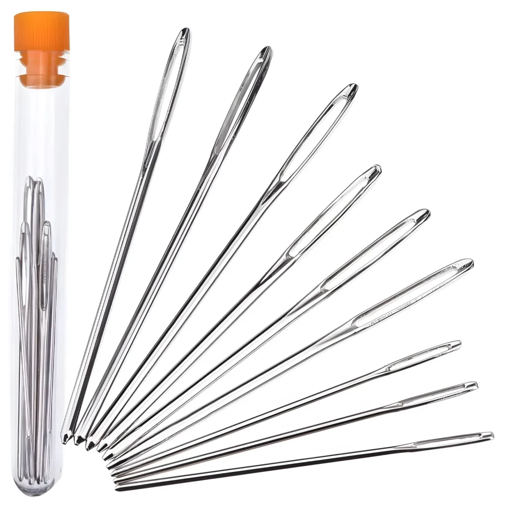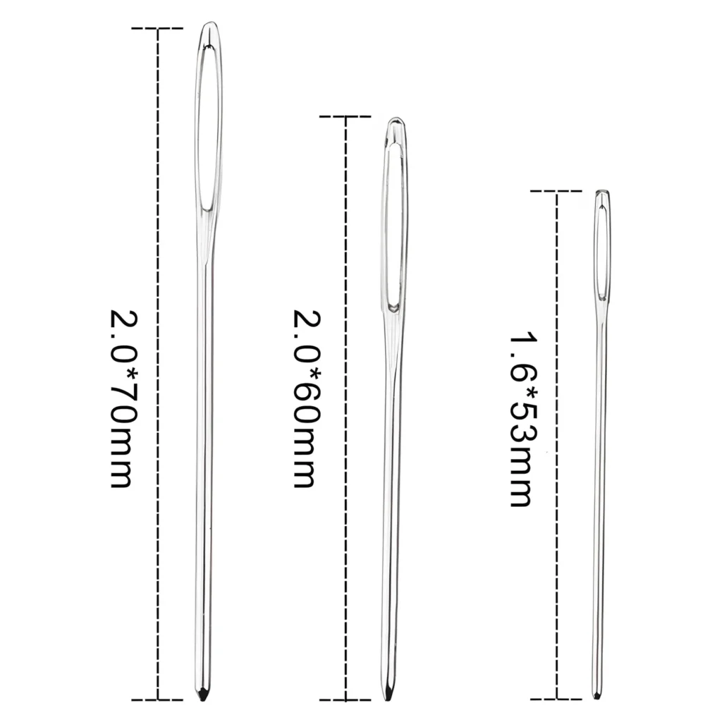 Kompletny zestaw 9 igieł: W opakowaniu znajduje się aż 9 igieł w trzech różnych długościach – 50 mm, 60 mm i 70 mm. Pozwala to dopasować odpowiednią igłę do konkretnej techniki haftu oraz rodzaju materiału. Zestaw sprawdzi się zarówno u początkujących, jak i bardziej doświadczonych osób. To praktyczne rozwiązanie do domowego użytku oraz prac hobbystycznych.