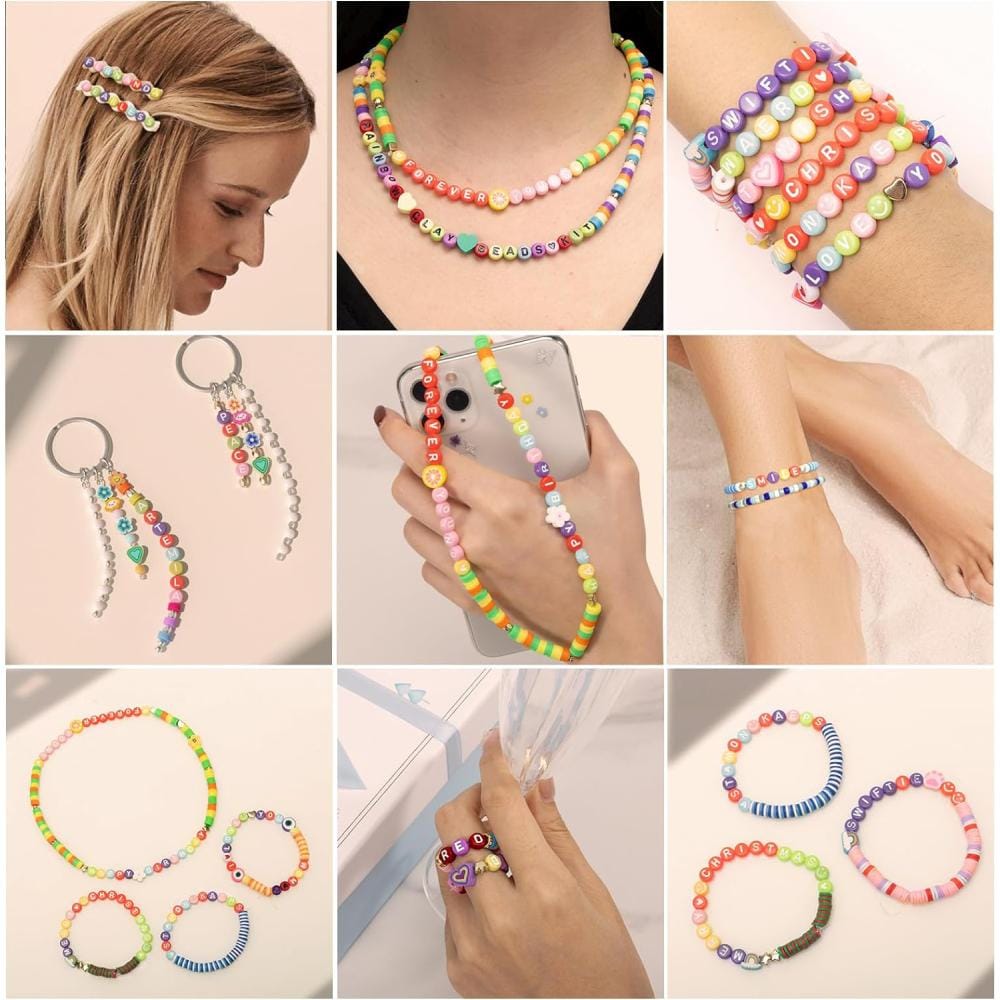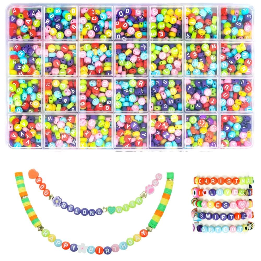 Stwórz spersonalizowane bransoletki z dowolnie ułożonym tekstem. Zestaw zawiera aż 1400 koralików z literami, serduszkami i emotkami, pozwalające na ułożenie dowolnych napisów.